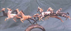 八骏马 属摆饰类动物系列作品。八匹动态各 异的奔马,巧妙的组装成两条交叉弧线形造型,给人以天马行空的幻觉。